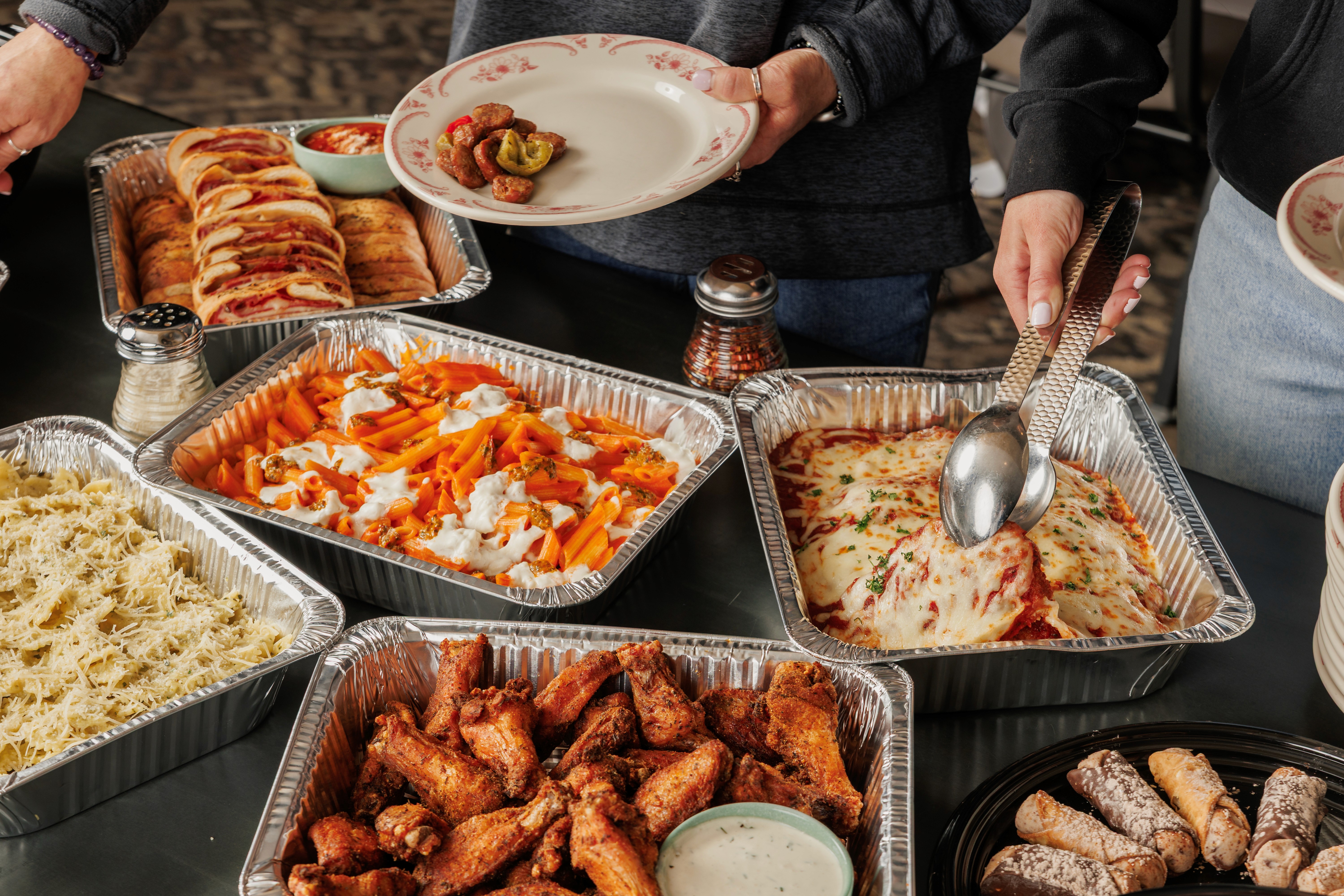 Browse our menu of classic pastas, sausage & meatballs, lasagnas, salads, and desserts. Mix and match to build your perfect Italian buffet.